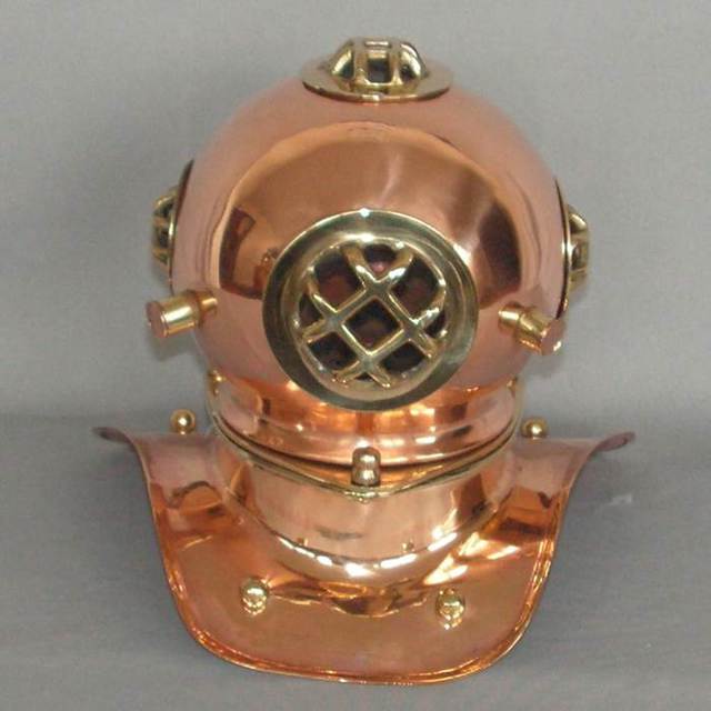 Fantastic, detailed, 200mm high, brass n copper (plated) replica Divers Helmet.