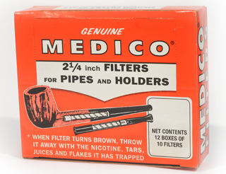Carton of 12 packs of 10 Medico pipe filters.