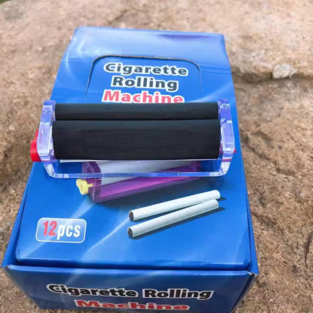 Adjustable, acrylic, regular-sized (70mm) rolling machine with a flexible PVC blind and a unique diameter adjustment lever (as shown on the end of the image) for filters from 5-8 mm.