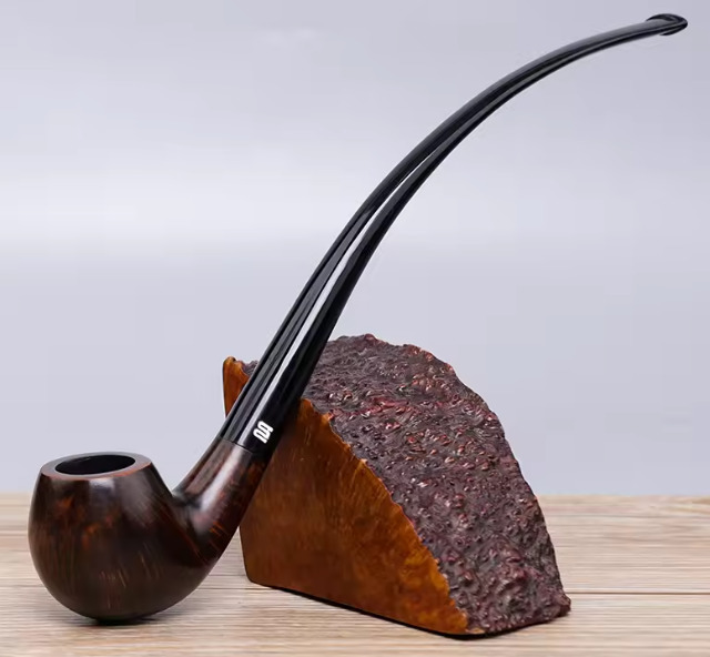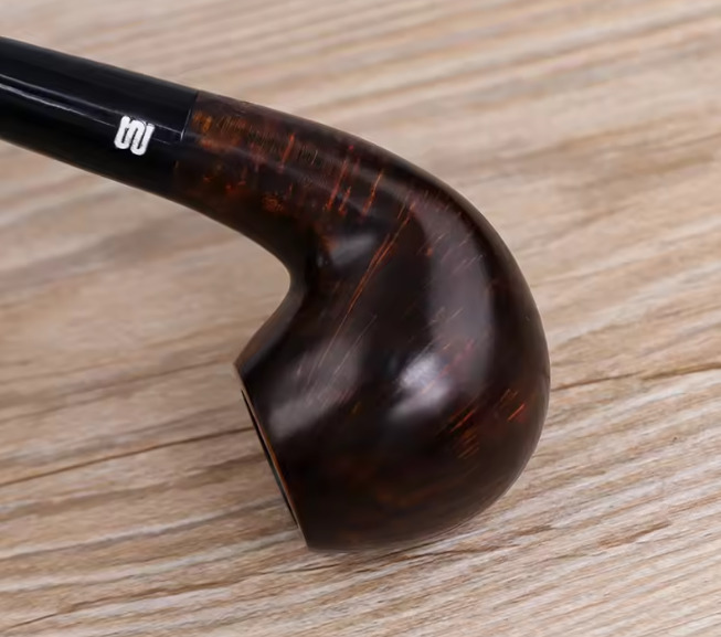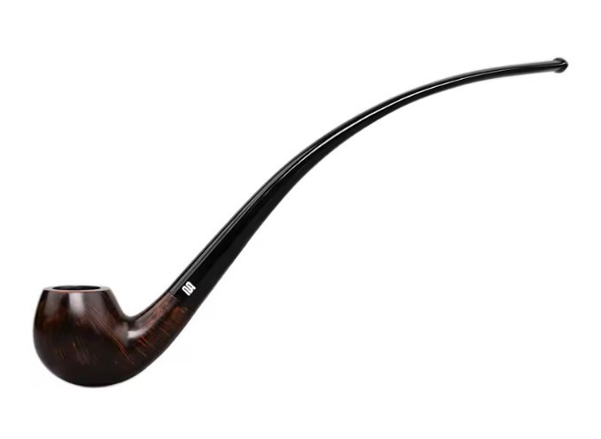 A handmade Italian briarwood Churchwarden tobacco pipe with deep brown stain, featuring classic design and portability.