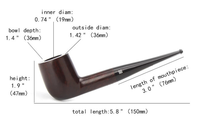 Accessories: Tool Kit, including Pipe Rack, Cork Knocker, Smoker’s Companion, Combustion Mesh, Cloth Bag, 2 Carbon Filters, Pipe Brushes, 10 Cleaners, Metal Mesh, Cardboard Box