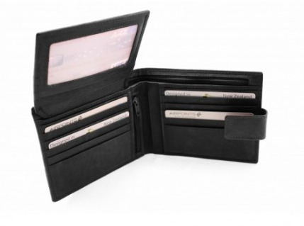 Also features flip up ID window and 2 note compartments with zipped note pocket.