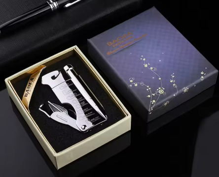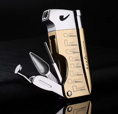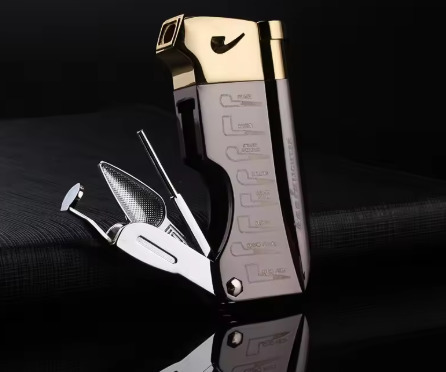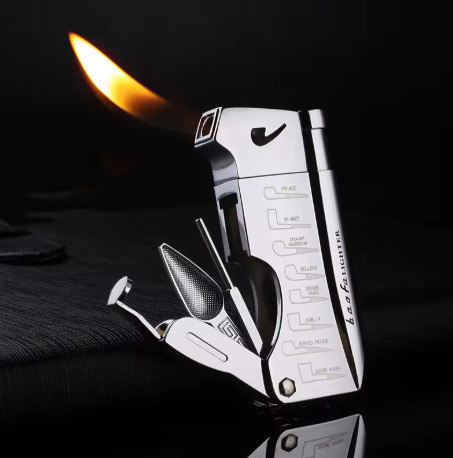 Soft-flame butane gas pipe lighter with pipe cleaning tools.