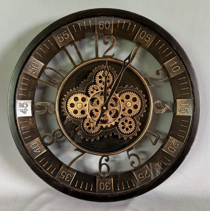 Wall Clock Black Bezel With Gold Gears (46 cm Diameter)
