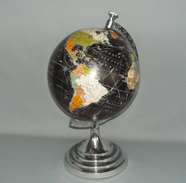 World Globe 25cm diameter on cast aluminium base 45cm high.
